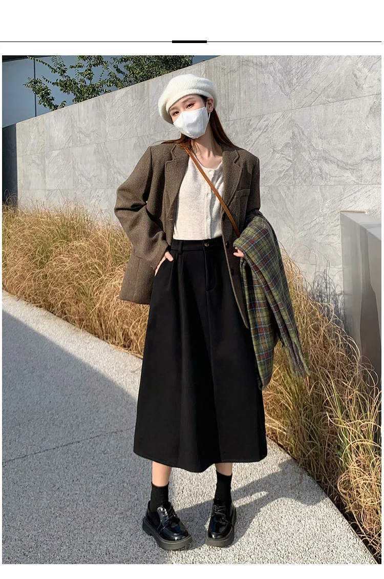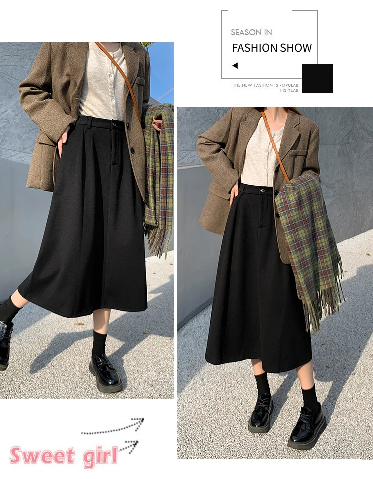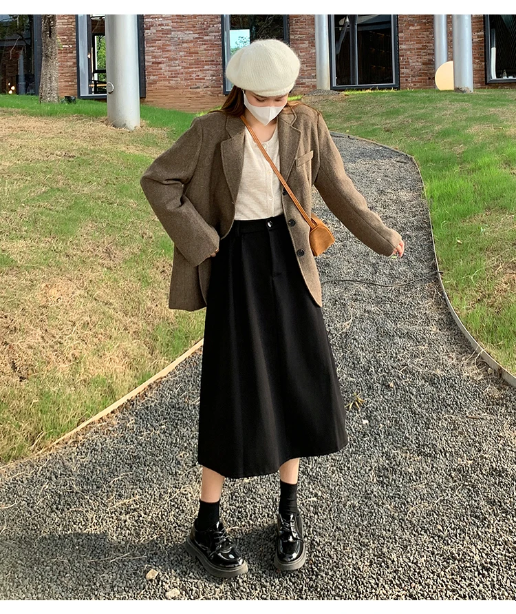 High Waist Woolen Skirt Women Long 2024 Autumn Winter Plus Size Women Clothing Elastic Waist A Line Brown Or Black Skirt Women